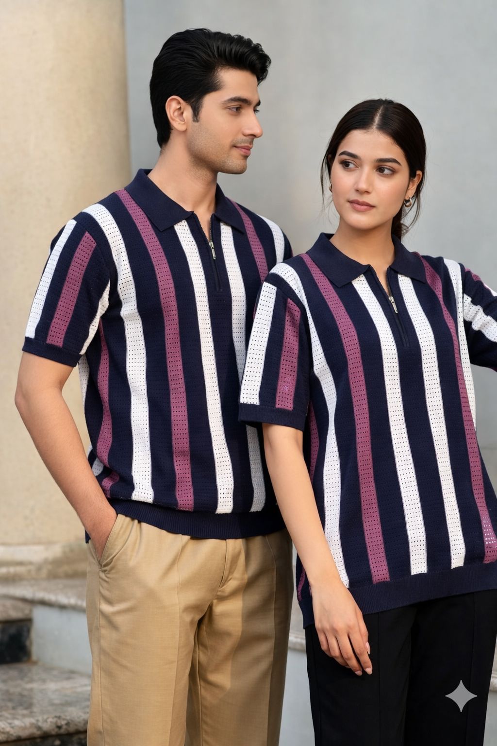 Unisex Polo shirt zipper navy blue